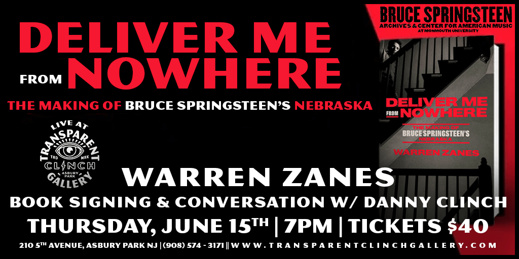 The Bruce Springsteen Archives and Center for American Music at Monmouth University in collaboration with Transparent Clinch Gallery are presenting a book signing event with Warren Zanes on June 15th at the gallery.